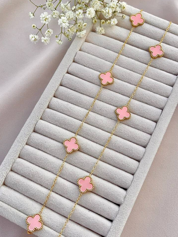 گردنبند ونکلیف ۱۰ گل رولباسی صورتی