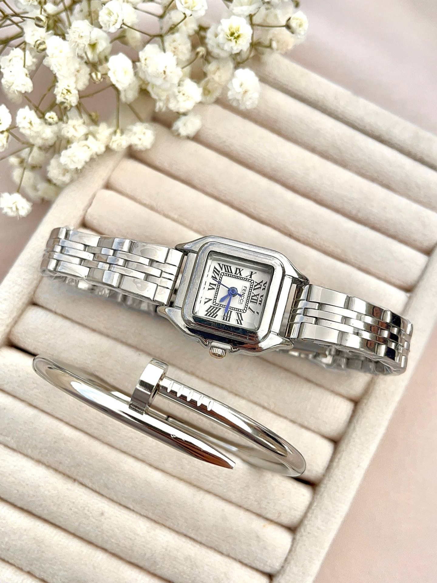 ساعت طرح کارتیه فنسی صفحه سفید عدد یونانی