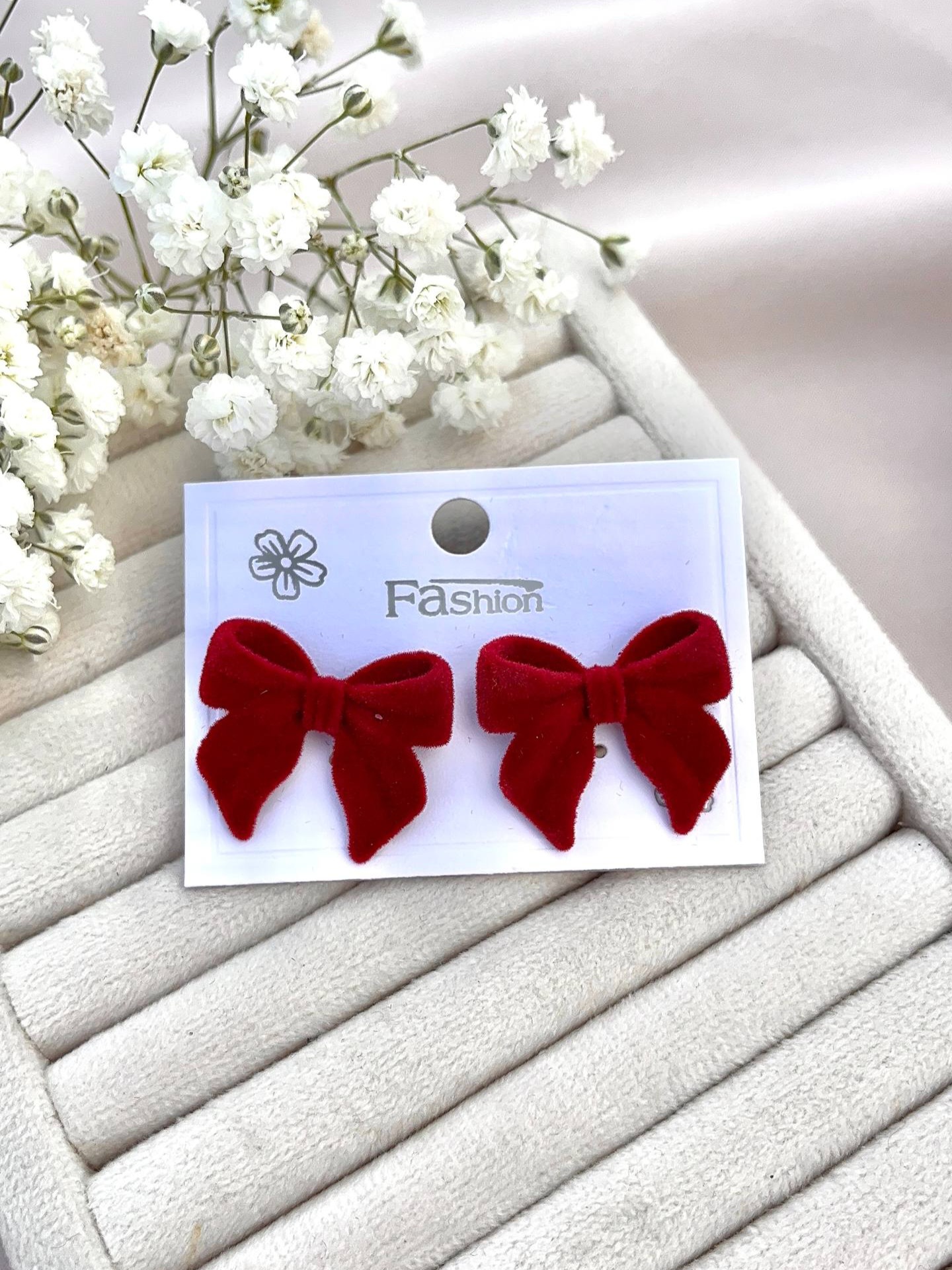 گوشواره پاپیون مخمل قرمز