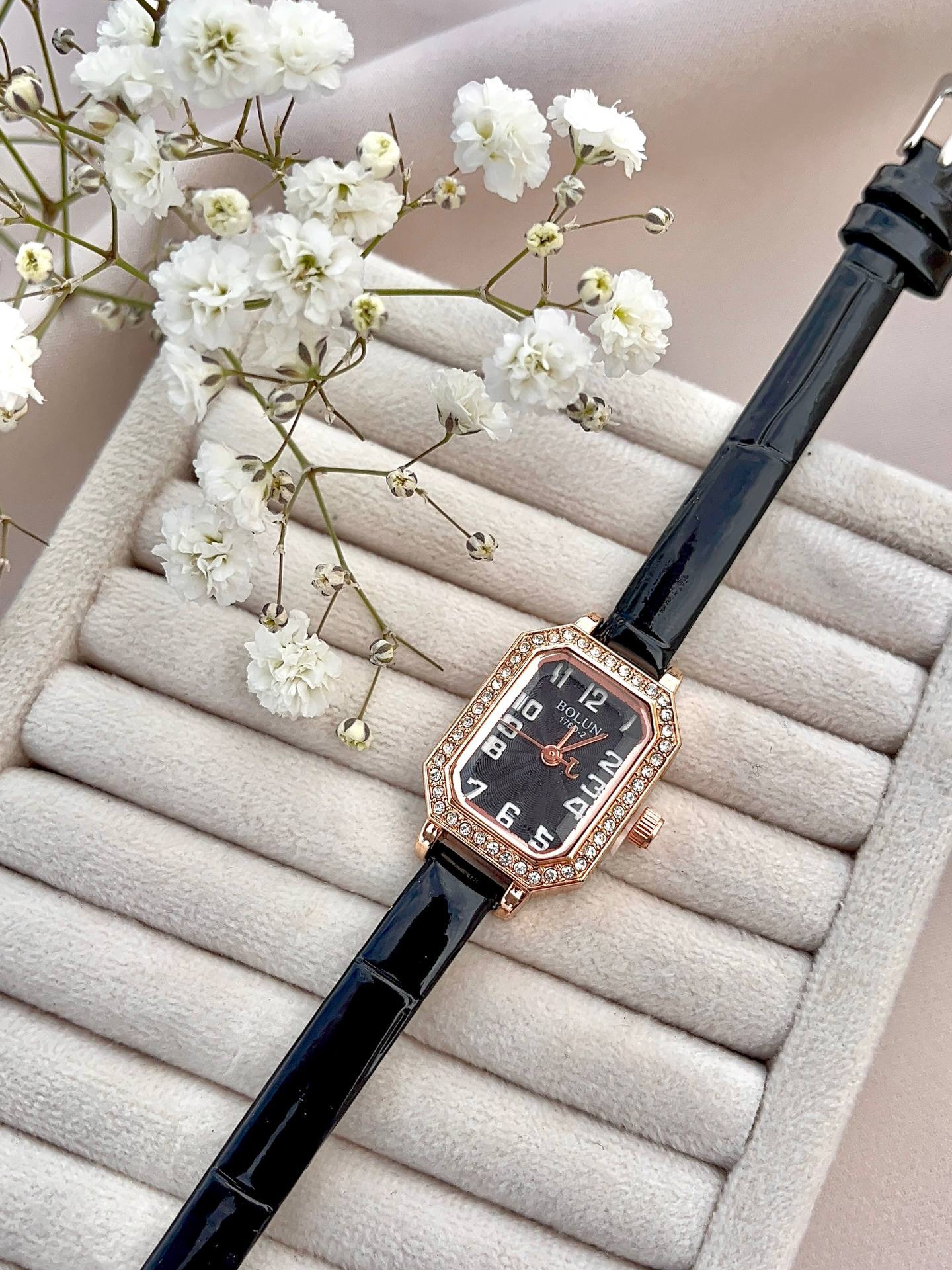 ساعت بولون بند چرم مشکی صفحه مشکی
