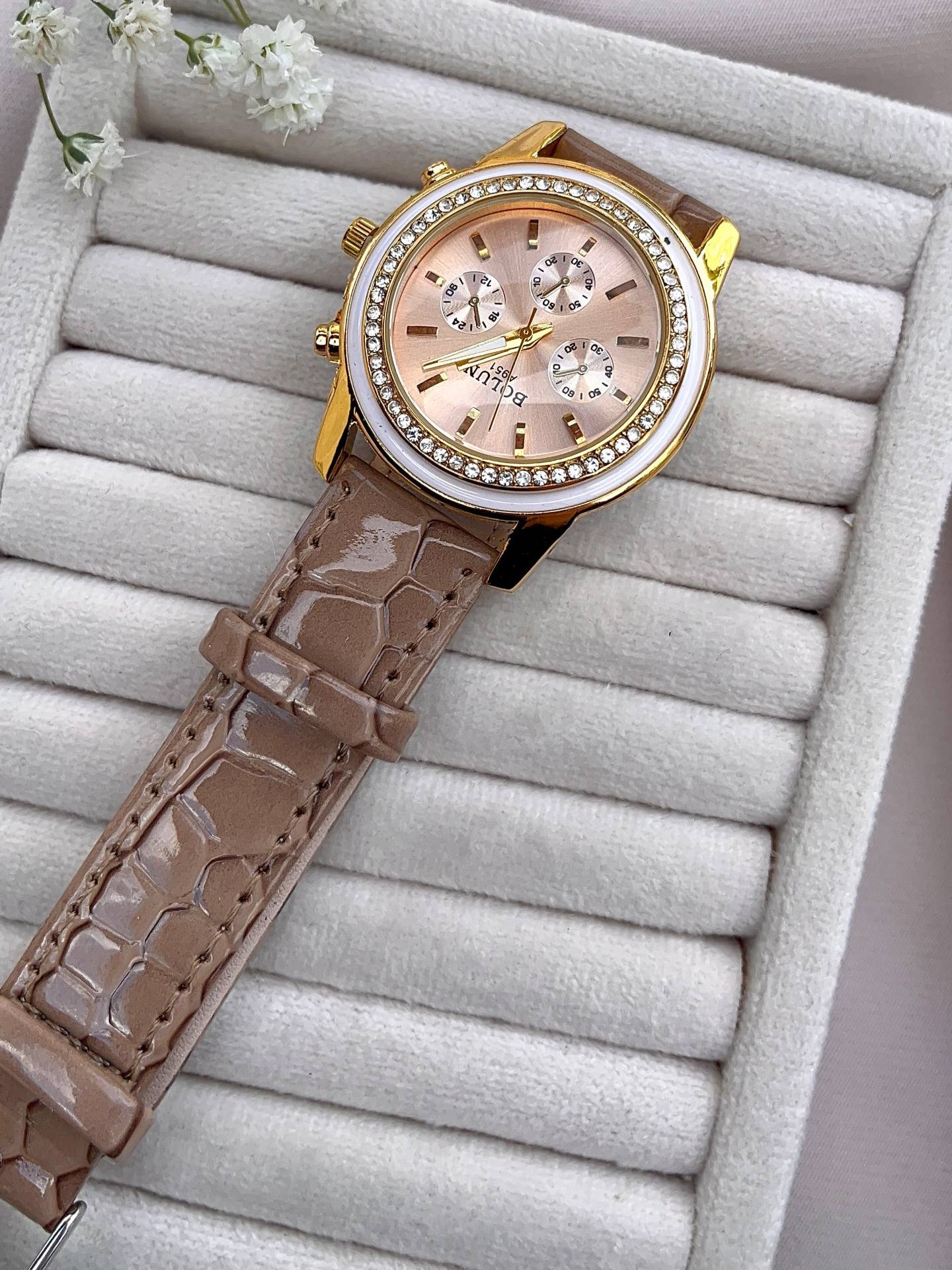 ساعت بند چرمی نسکافه ای طرح سه موتوره بولون