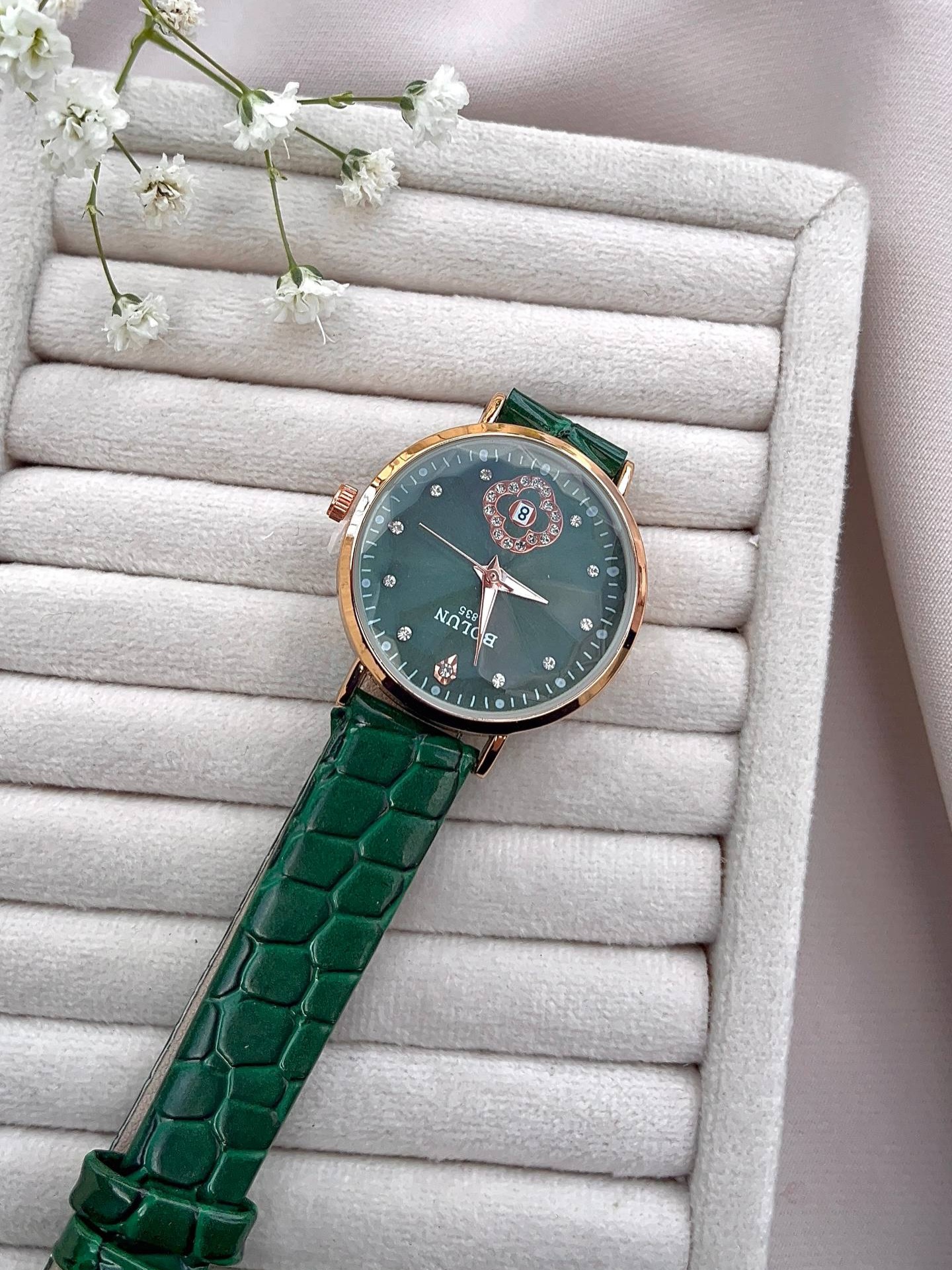 ساعت بند چرمی سبز بولون